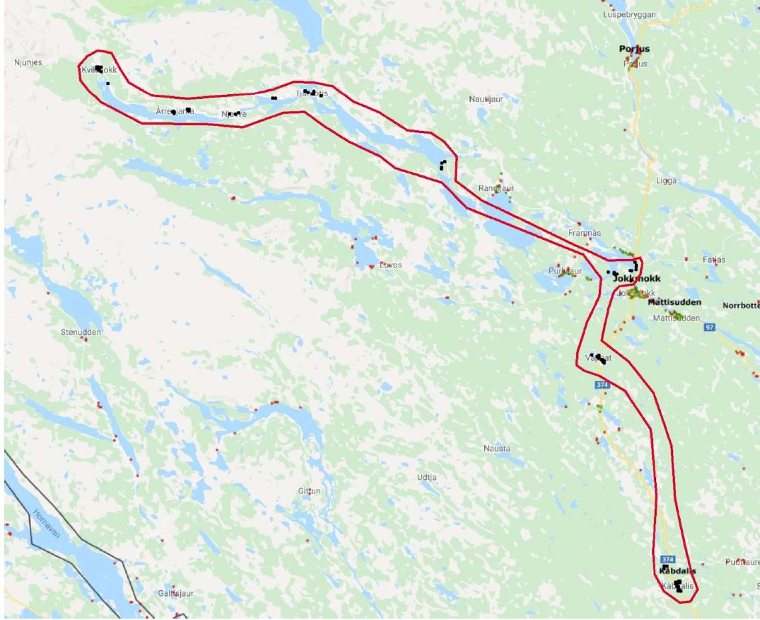 En överblickskarta gällande område 1-3 i Kåbdalis.